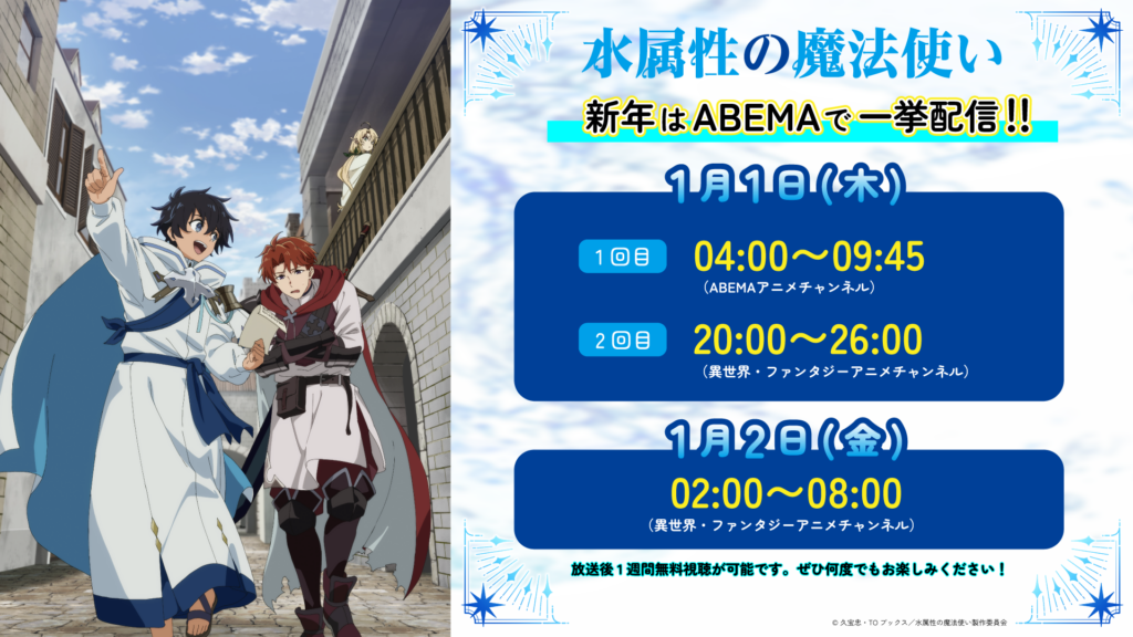 『水属性の魔法使い』ABEMA にて年始一挙配信決定!